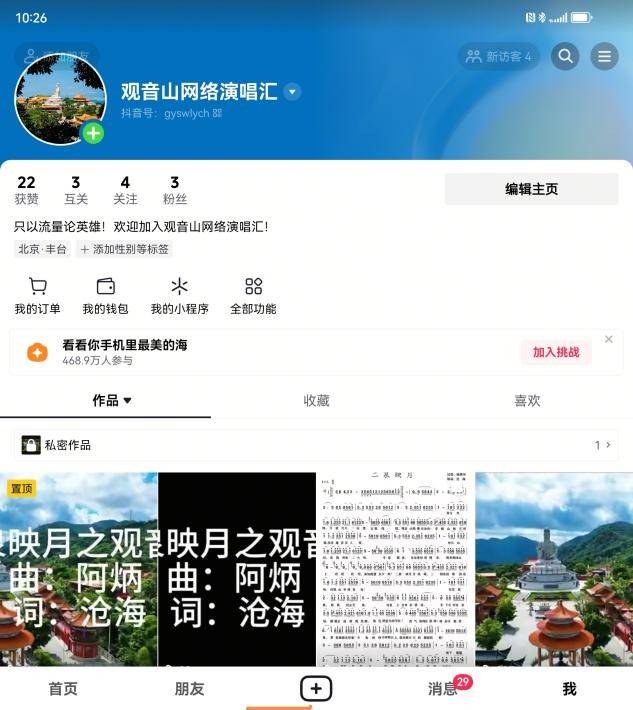 演唱汇抖音号页面 《二泉映月之观音山》网络演唱汇活动旨在通过音乐形式传承经典《二泉映月》,并提升全民保护国家森林资源的重要性和扩大观音山国家森林公园的知名度。活动面向全国音乐爱好者,活动持续至2026年8月30日。